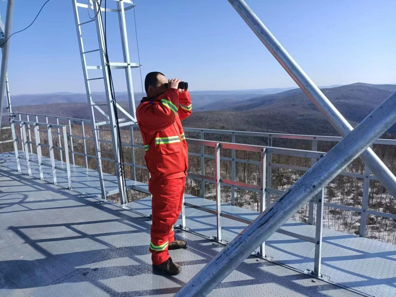 瞭望員在塔上進行全天候火情巡查(艾泉 攝 )