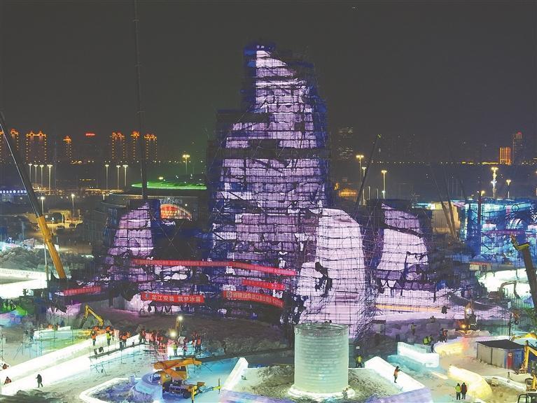 作為目前全球規(guī)模最大的冰雪主題園區(qū),本屆哈爾濱冰雪大世界總用冰量、用雪量雙雙刷新紀錄。施工現(xiàn)場,上萬名來自龍江安裝集團的建設(shè)者在低溫中晝夜奮戰(zhàn),18個冰建工區(qū)、5個雪建工區(qū)同步推進,園區(qū)建設(shè)已完成70%。
